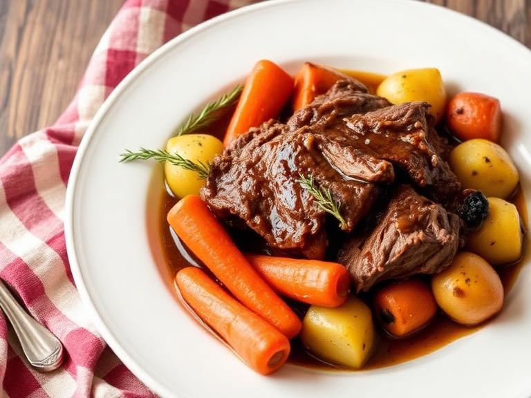 11. 11Add carrots and potatoes around roast, cover, and cook another 1 hour.
